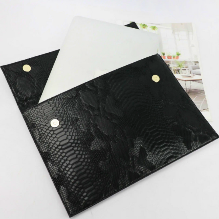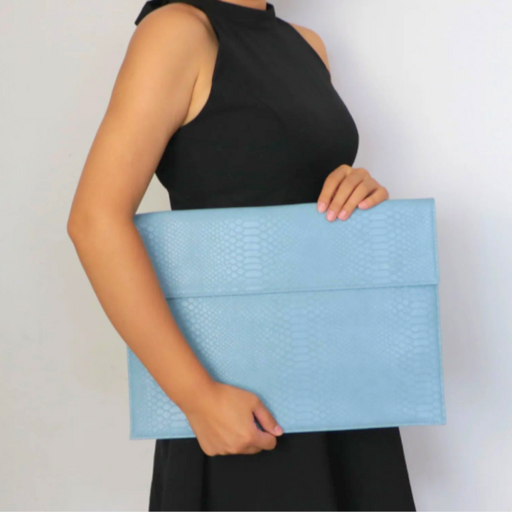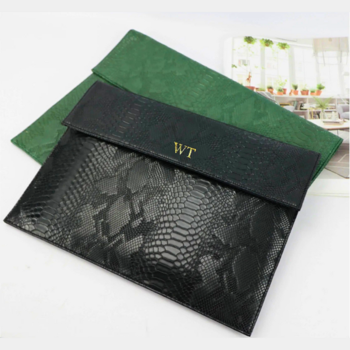 Carry your tech in style with our personalised laptop case, crafted from high-quality eco-leather in luxurious ostrich, croco, or python textures. Designed to protect your 13” or 15” laptop, this elegant sleeve combines function and sophistication with a bespoke touch.